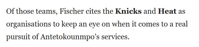 北京时间12月8日,据名记Fischer报道,尽管字母哥近期表态希望能继续留在雄鹿,但联盟其他球队已开始提前筹备,随时等候密尔沃基方面释放愿意听取交易报价的信号。在潜在追逐字母哥的球队中,Fischer特别提到尼克斯和热火是值得重点关注的对象。