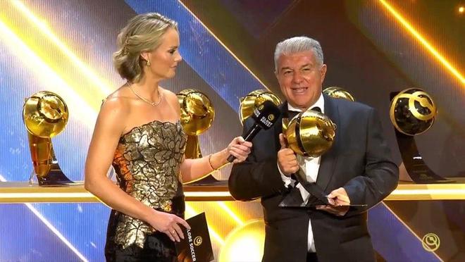 北京时间12月28日,2025年度环球足球奖颁奖典礼在迪拜落下帷幕。巴萨主席拉波尔塔三次登台领奖,先后捧起2024-25赛季西甲最佳俱乐部奖、授予主帅弗里克的最佳教练奖,以及归属拉菲尼亚的最佳球员奖。