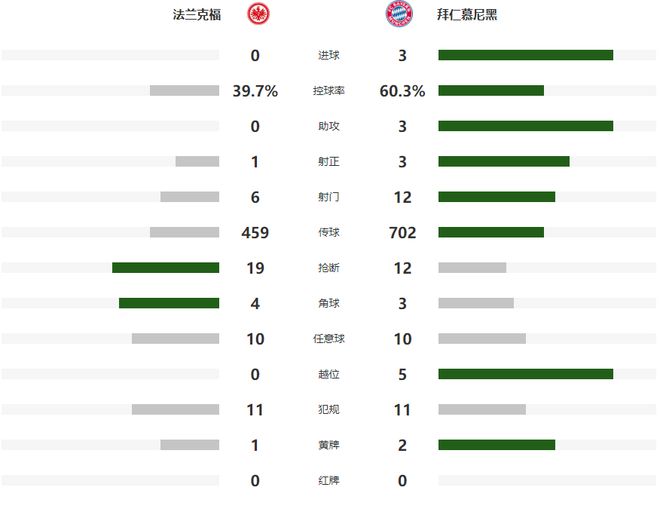 余下的时间,拜仁继续主导着比赛,长时间压在法兰克福大禁区前沿,让主队在防守端疲于奔命,根本无力组织起有威胁的反击,比赛最后时刻,迪亚斯再入一球上演梅开二度的好戏,将全场比分定格为了3-0。
